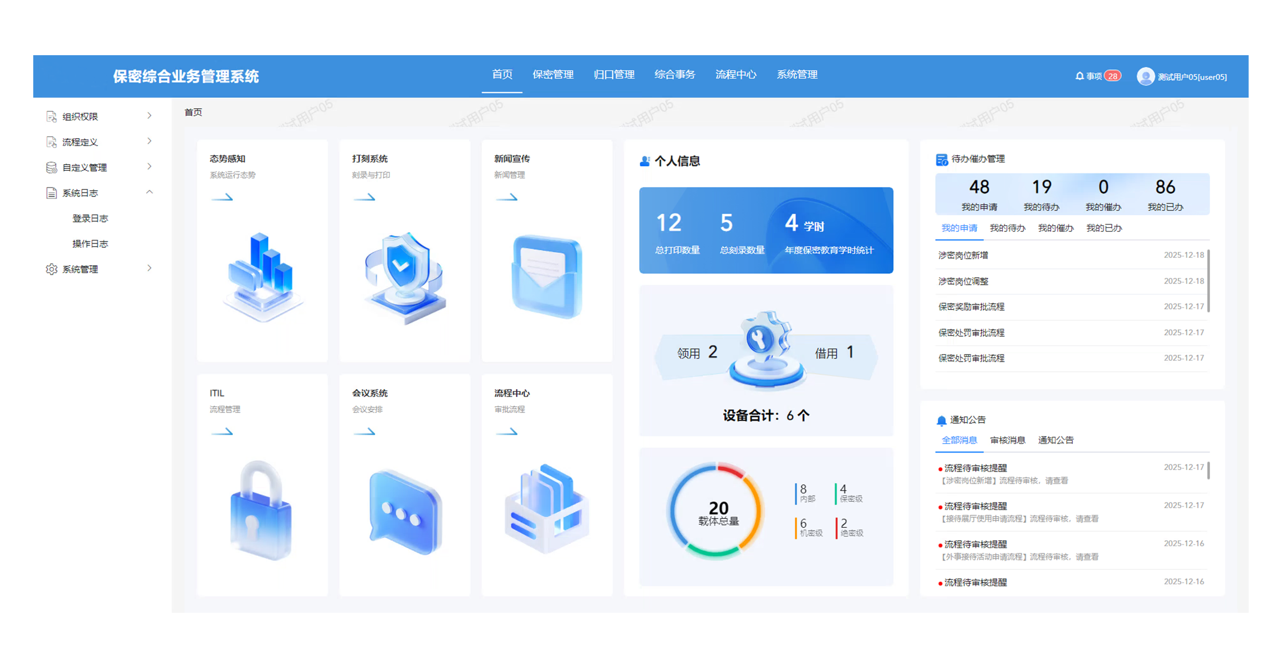 博智保密信息全域管理系統面向保密管理工作中的定密管理、涉密人員管理、涉密網管理三大管理以及包括保密制度、保密責任、涉密載體管理、涉密信息系統管理、涉密會議活動管理、涉密信息設備管理、涉密項目管理等多類保密管理對象,提供多維度、全景式、智能化、全生命周期的保密信息管理功能。為單位提供一個符合保密要求的流程制度合規化和資產數據規范化的保密信息全域管理系統,實現“橫向全覆蓋,縱向通數據”的能力,確保保密管理無死角。